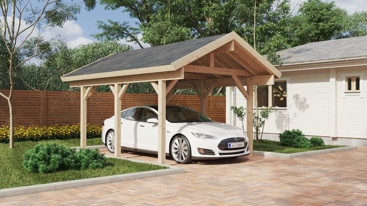 Ein Klassiker, der sich harmonisch in jede Umgebung einfügt. Holzcarports sind umweltfreundlich und können individuell gestaltet werden. Allerdings benötigen sie eine regelmäßige Pflege, um gegen Witterungseinflüsse resistent zu bleiben.